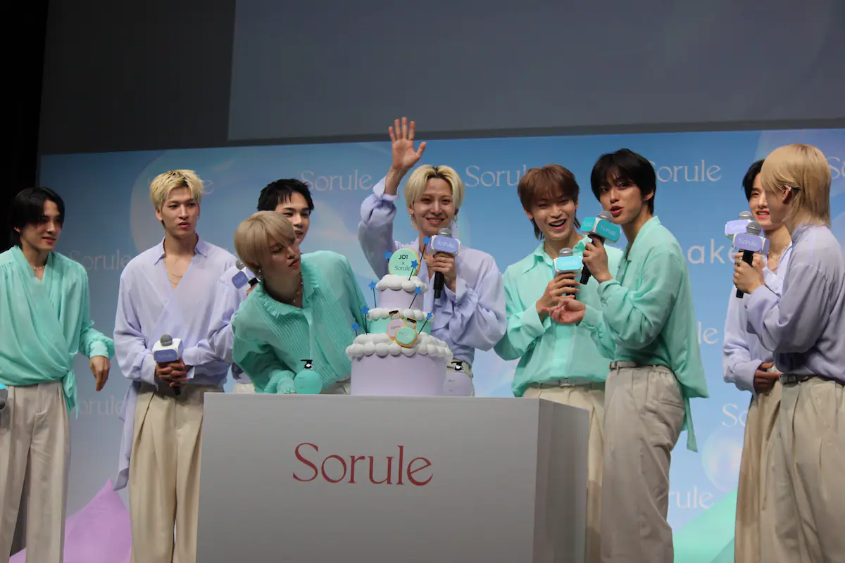 JO1がブランドアンバサダーを務めるセルフケアブランド「Sorule(ソルレ)」のリブランディング&新CM発表会が開催された。