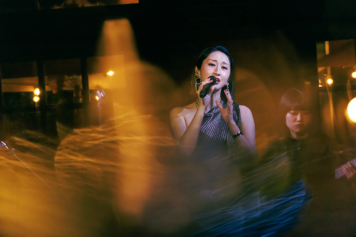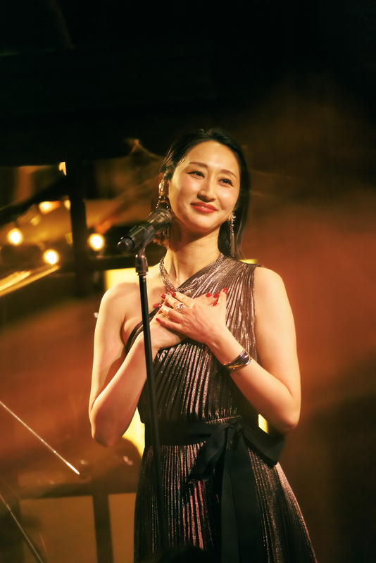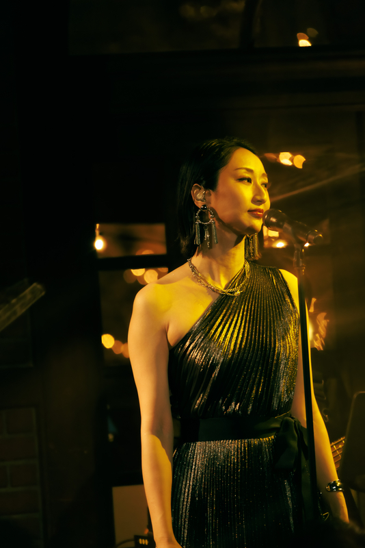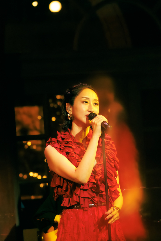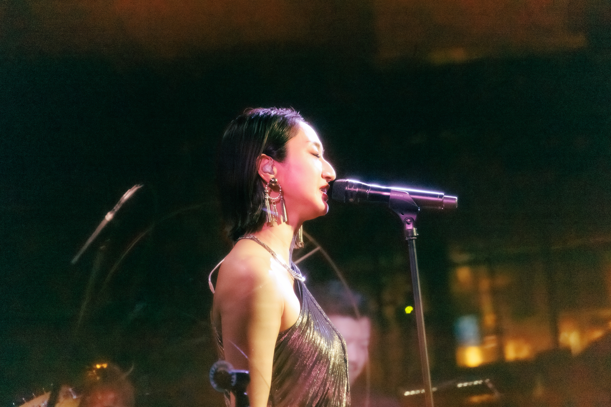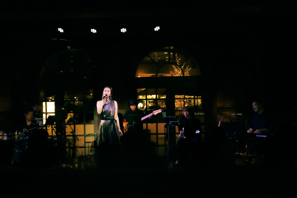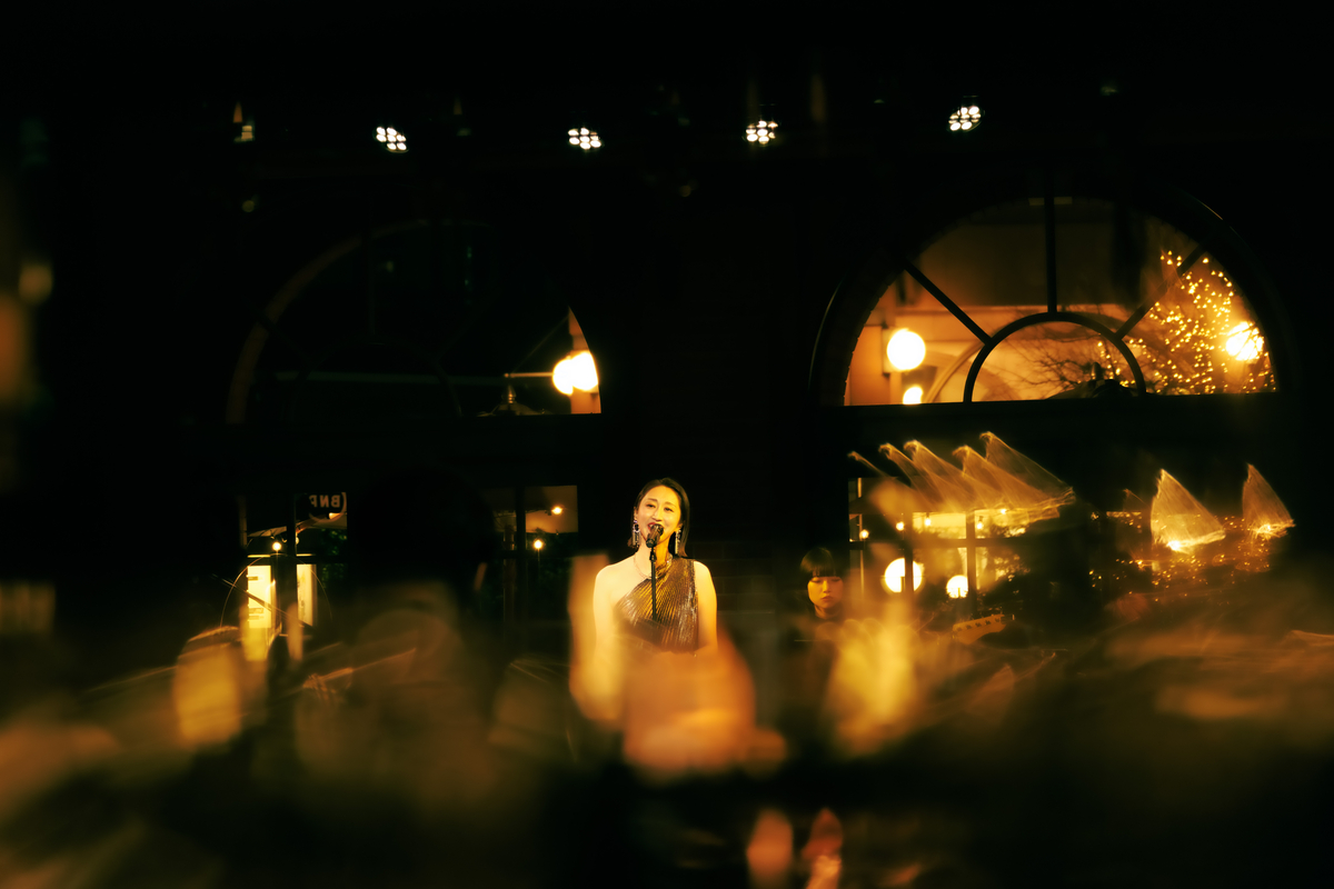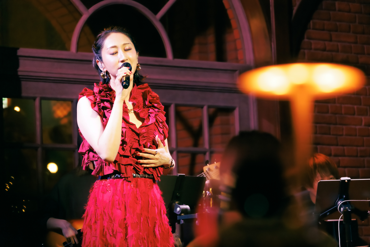 1曲は1986年の楽曲、美空ひばりの「愛燦燦」だ。〈雨 潸々と〉と歌い出すと、Ms.OOJAの後ろにある窓の外には、傘を差している人がポツポツと見える。天候さえも、このライブの演出になっているようだ。そんな風景を背負いながら、Ms.OOJAは包み込むような優しい歌声で同曲を歌い上げると、会場を見渡して「名曲ですね」と微笑む。「続いては1980年のこの曲です」と語り、八代亜紀の「雨の慕情」へ。同曲の違った一面を引き出すようなグルーヴィーなアレンジが印象的だ。そしてMs.OOJAは感情を歌に乗せすぎることなく、楽曲の魅力をストレートに表現しているように見えた。さらに有名曲が続く。「1987年リリースのこの曲です」と曲振りをすると、壮大さを感じるイントロがスタート。島倉千代子の「人生いろいろ」だ。Ms.OOJAによって現代のサウンド感にアップデートされている同曲は観客たちを虜にしていたはずだ。