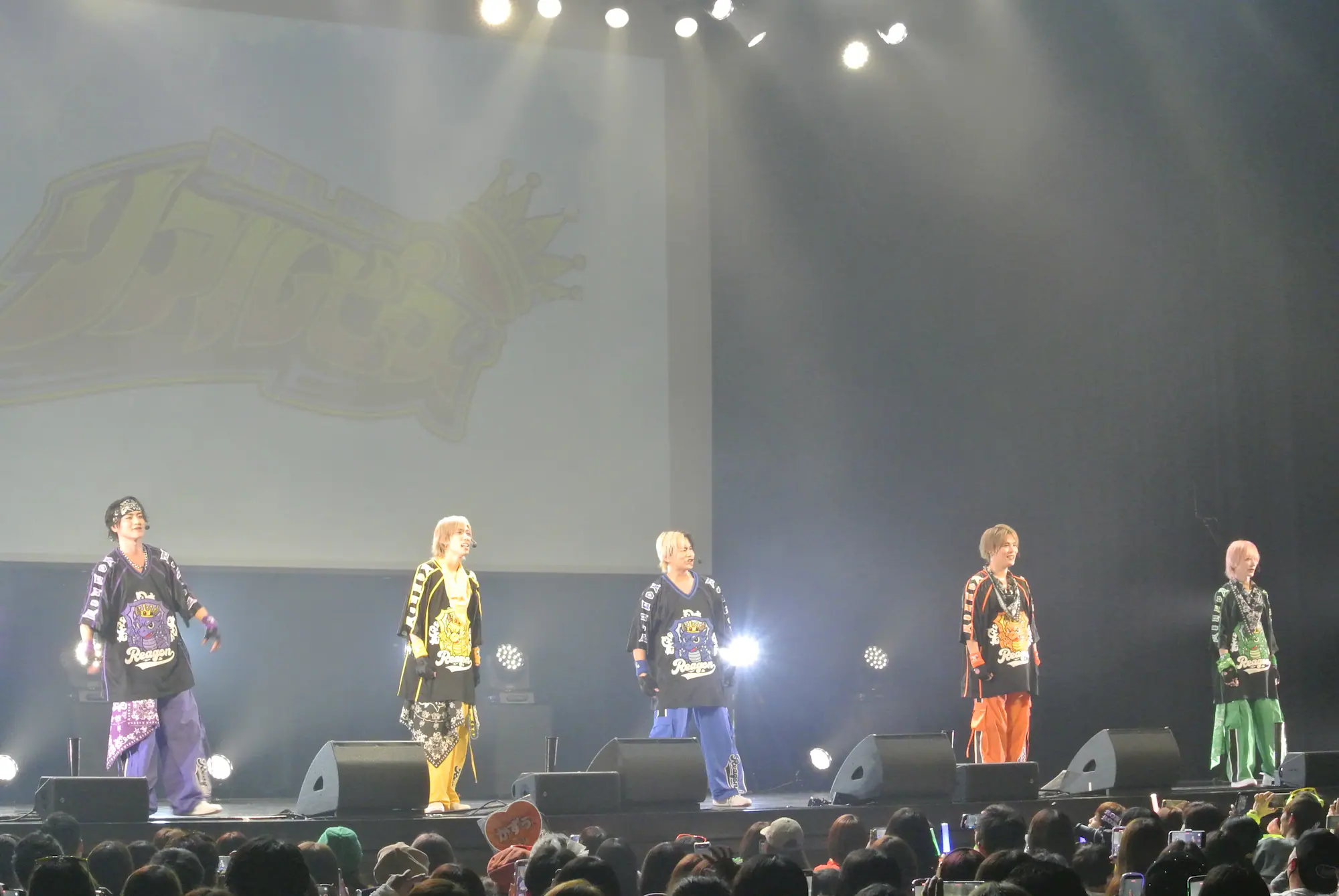 中盤の動画では、メンバーが“ノリノリの実”を食べるという展開に。「ノリノリの実を食べて、とんでもなくノリノリになってしまう」というユーモラスな流れへと映像は発展していく。その映像が終わってステージに再び現れたメンバーは、なんとB-BOYSスタイルに。鮮やかな衣装替えをした5人が登場したのだった。本当に“ノリノリの実”を食べたことによる“効果”がそのまま現実になったかのような演出で、HIPHOPスタイルの変化に意味づけを与え、ライブを盛り上げていく。そこからの新曲「パラダイス」の披露は、この日のライブのハイライトのひとつとなったのだった。