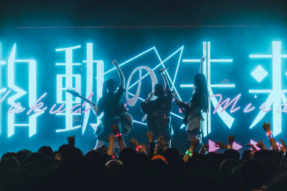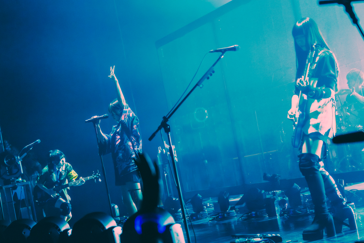 最初のMCで理名が「しょっぱなから飛ばしがちなので、乗り遅れ注意ですよ!」とちゃめっ気たっぷりに話したが、その言葉通りのステージがこのあとも展開されていく。本ツアーでライブ初披露となった「蜃気楼ニ問フ」、2024年リリースの「闇に溶けてく」と、彼女たちが次々に繰り出すサウンドからは音源以上に迫力とスピード感が伝わり、デビューからの短期間でライブバンドとしてめきめきと実力と経験値が高まり続けているその姿には目を見張るものがある。ライブを観るたびにそう強く実感させる要因に、ドラマーとともにバンドの軸となるグルーヴを生み出す朱李のベースと、テクニックはもちろんのこと、それ以上に深みのある表現力が常に向上している夕莉のギタープレイがあることを断言しておきたい。