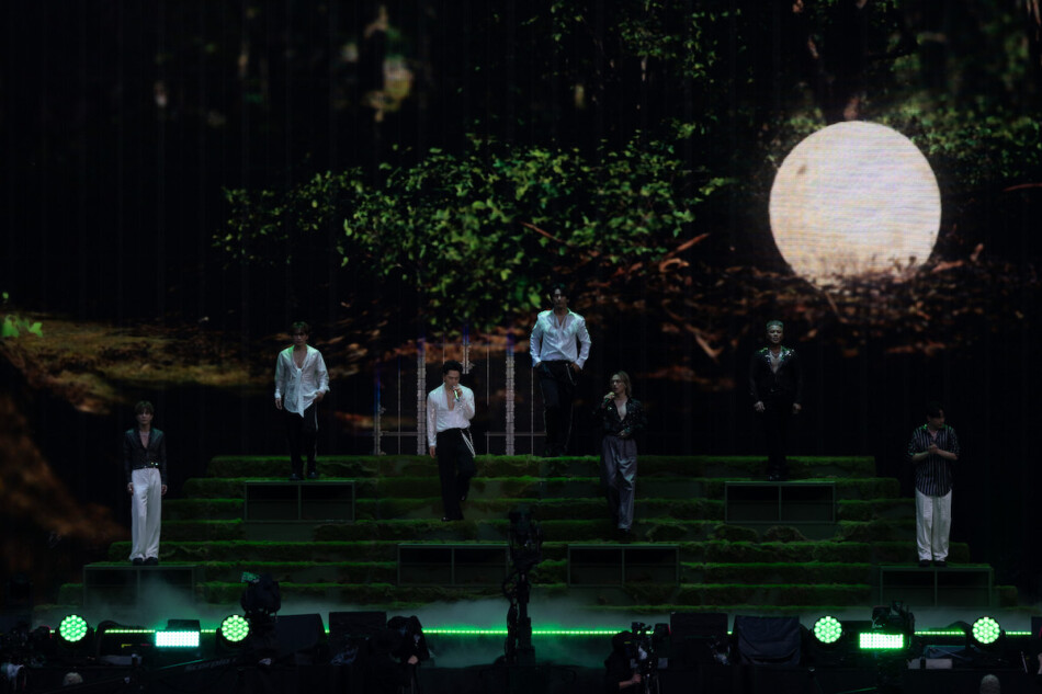 すっかり暗くなった会場に、ライトスティックの青い光が夜空のように広がる。星空の映像をバックに歌われたのは「次の時代へ」。今市とØMIの美しいハーモニーが、グループの明るい未来を想像させるようだった。