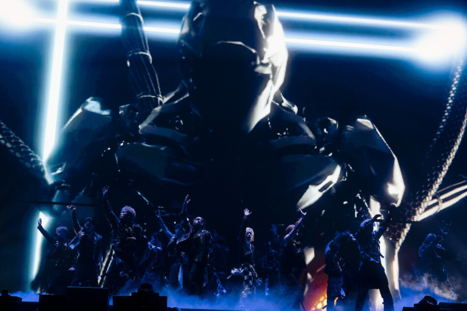 2組が集結したオープニングステージの後、先攻を務めたのはTHE RAMPAGE。スモークが立ち込める神秘的な空間のなかに現れた15人(川村壱馬は活動休止中のため欠席)は、「CyberHelix」の爽快さと力強さを兼ね備えたパフォーマンスで、一気に観客のボルテージを引き上げていく。続く「SILVER RAIN」は、背後の巨大スクリーンに映し出される雨の映像とのシンクロが印象的なステージに。降りしきる雨のなかで踊っているかのような姿が、困難を突き破りながら光を目指す楽曲の世界観と重なった。