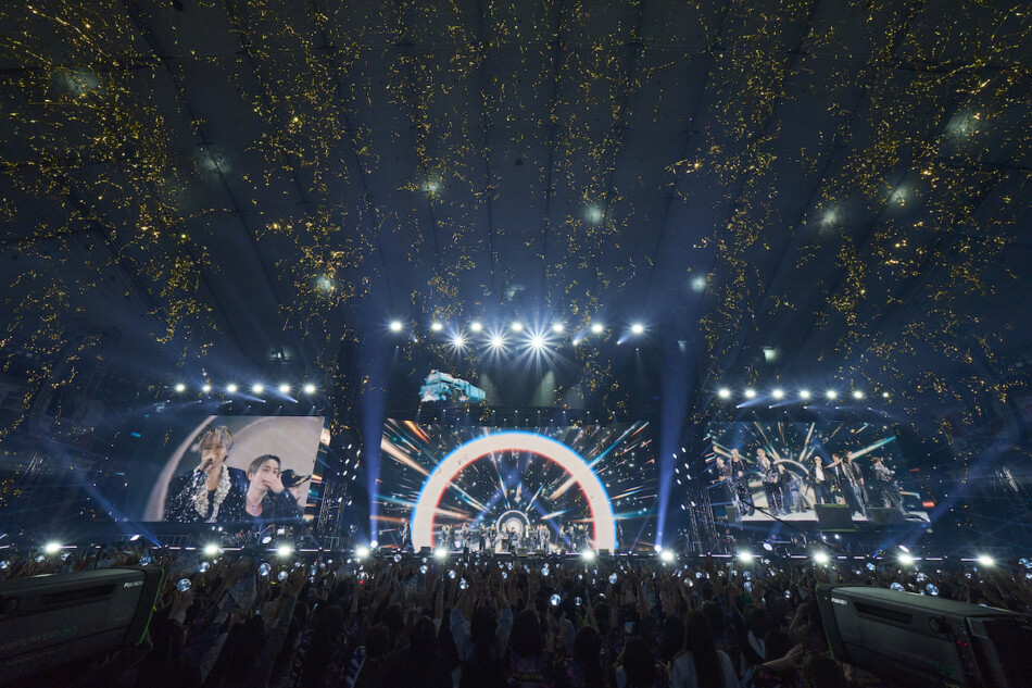 客席にカラフルなバルーンがいくつも舞い、自らのルーツでもあり、リスペクトを贈るバブルガム・ブラザーズ「WON'T BE LONG」のカバー、キュートな振りがドーム中で見られた「Ki・mi・ni・mu・chu」に続いて、本編ラストは「銀河鉄道999」だ。躍動するビートに合わせて花道でジャンプするメンバー。m-floのVERBALが現れ、完全体による「銀河鉄道999」を4万人に届けた。