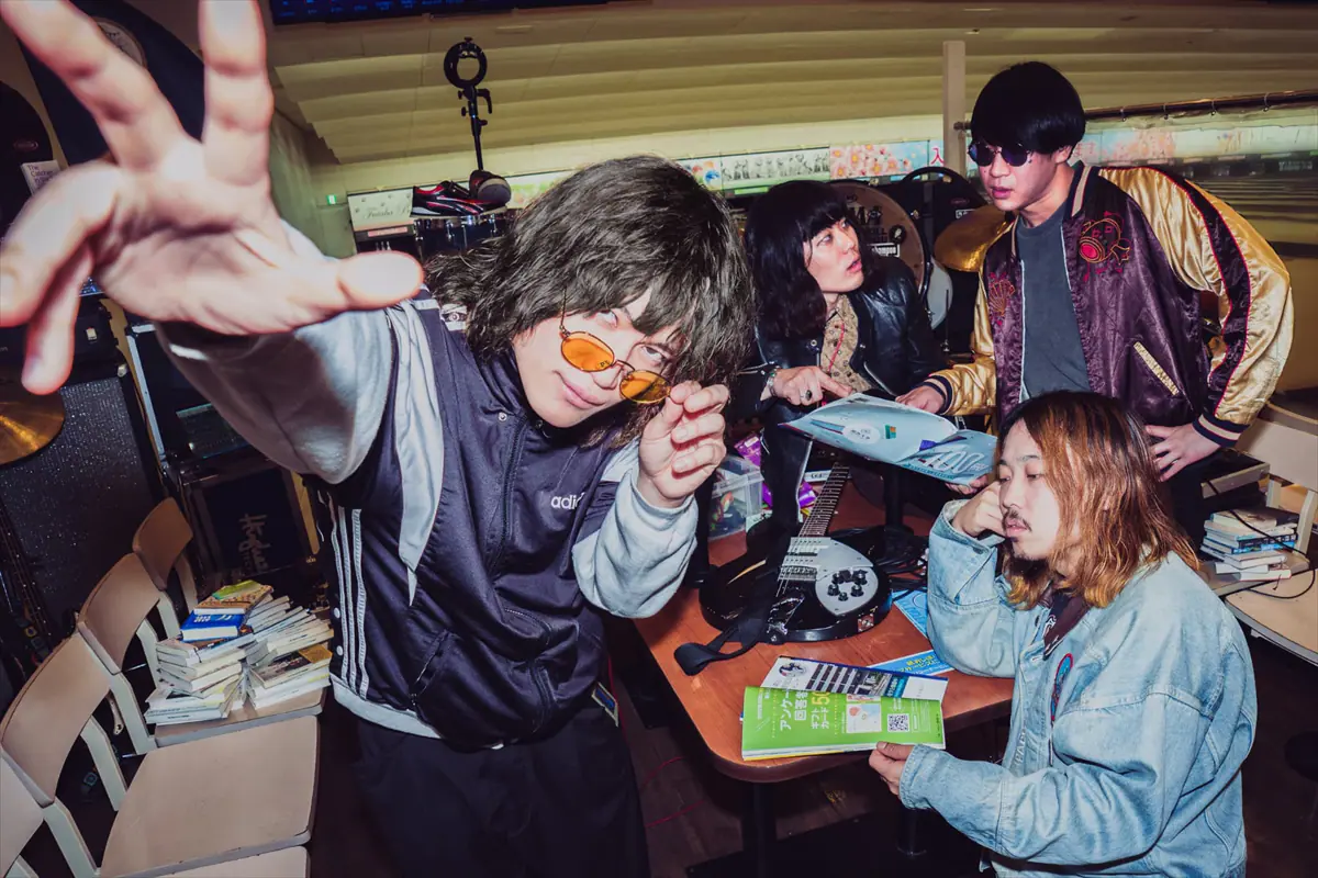 夏のツアーに先駆け、我々PK shampooの四人が出会い、そしてバンドを結成した関西大学前にあるボウリング場のレーンで今の漏れ達を撮影してもらいますた。