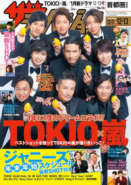 毎年恒例、元旦の「TOKIO×嵐」 でタッグを組むTOKIOと嵐が、表紙&グラビアで登場する『週刊ザテレビジョン』(12月13日号)が12月4日に発売された。年末年始のジャニーズのテレビ番組や舞台、映画出演情報など、スケジュールが網羅されている。