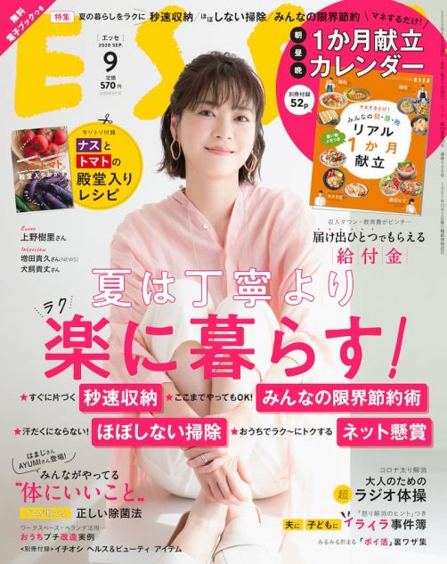 暑い夏……とにかく楽に過ごせるワザを集めた『ESSE』9月号 表紙は上野樹里