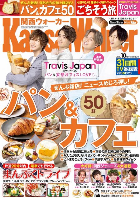 エリア情報誌 『関西ウォーカー』 10月号が、9月19日にKADOKAWAより発売された。本誌の表紙にはジャニーズJr.の人気グループ・Travis Japanより、七五三掛龍也、吉澤閑也、松田元太、川島如恵留が登場。中面のグラビアにはメンバー全員が登場し、「パン」 と 「オフィスLOVE」 をテーマにした妄想グラビアに挑戦している。