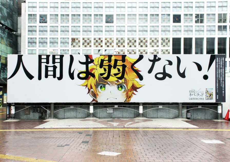 『約束のネバーランド』(著:白井カイウ・出水ぽすか)の完結巻となる20巻が、10月2日に発売されることを受けて、渋谷のハチ公前広場にメッセージ広告が掲載された。同作は、6月刊行の『週刊少年ジャンプ』28号で最終回を迎え、大きな話題となっていた。