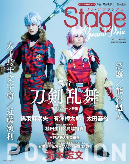 舞台『刀剣乱舞』から大千鳥十文字槍&泛塵が表紙に登場した『ステージグランプリ』vol.13 2021 SPRINGが、4月6日に主婦の友インフォスより発売される。裏表紙は荒木宏文が飾っている。通常版とは異なるカットを使用したアニメイト限定表紙版も発売される。
