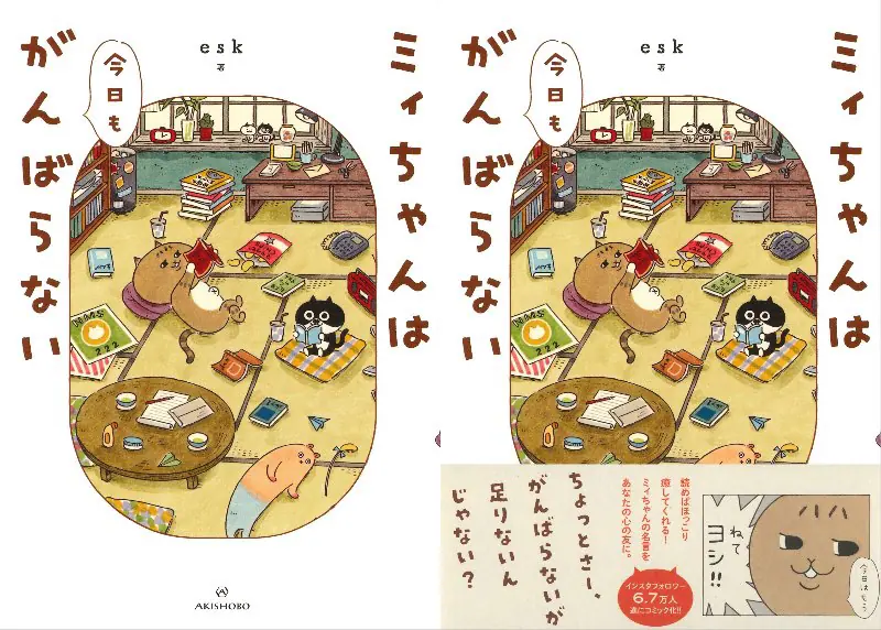 SNSで人気のイラストレーター・eskのコミックエッセイ『ミィちゃんは今日もがんばらない』(亜紀書房)がロングセラーとなり、このたび3刷が決まった。