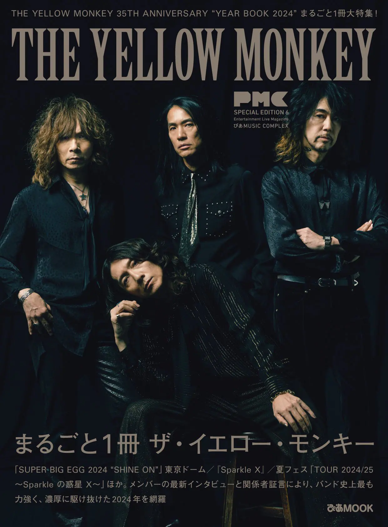 本書は、メンバーの最新ロングインタビュー、撮りおろしグラビア、4人それぞれによるぴあ名物100Q(100問100答)のほか、新たな金字塔となった4月27日の東京ドームライブから結成35周年を迎えた12月28日の日本武道館公演まで、10thオリジナルアルバム『Sparkle X』を基軸に、THE YELLOW MONKEYの2024年を追った大特集本だ。