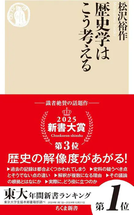 株式会社筑摩書房が2024年9月9日に刊行した松沢裕作『歴史学はこう考える』(ちくま新書)が、2月10日発表の「新書大賞2025」(主催・中央公論新社)の第3位に選ばれた。また本書は東大年間新書ランキングでも第1位を獲得するなど、話題を呼んでいる。