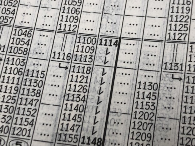 梶原:時刻表は第三種郵便で1kg以内に収める必要があるため、“時刻表用紙”という専用の紙を使っています。紙が薄くて透けてしまうことがあるため、文字が読みやすくなるよう、表裏の表の罫線がきれいに重なるように印刷しています。また、フォントも“Zikoku”という小さくても潰れにくく、かつ読み取りやすい専用のフォントを使用しています。