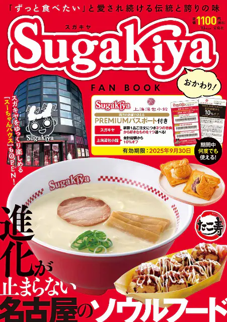 スガキヤは東海地区を中心に253店舗(※「スガキヤ」として)を展開する人気ラーメン&甘味チェーン。2022年7月に第1弾『スガキヤ FAN BOOK』を発売。スガキヤの歴史やラーメン&甘味の人気ランキング、豪華有名人によるスガキヤ愛インタビューなど読み応えたっぷりの誌面と、お得な「SPECIALパスポート」で3刷累計4万部と好評を博した。