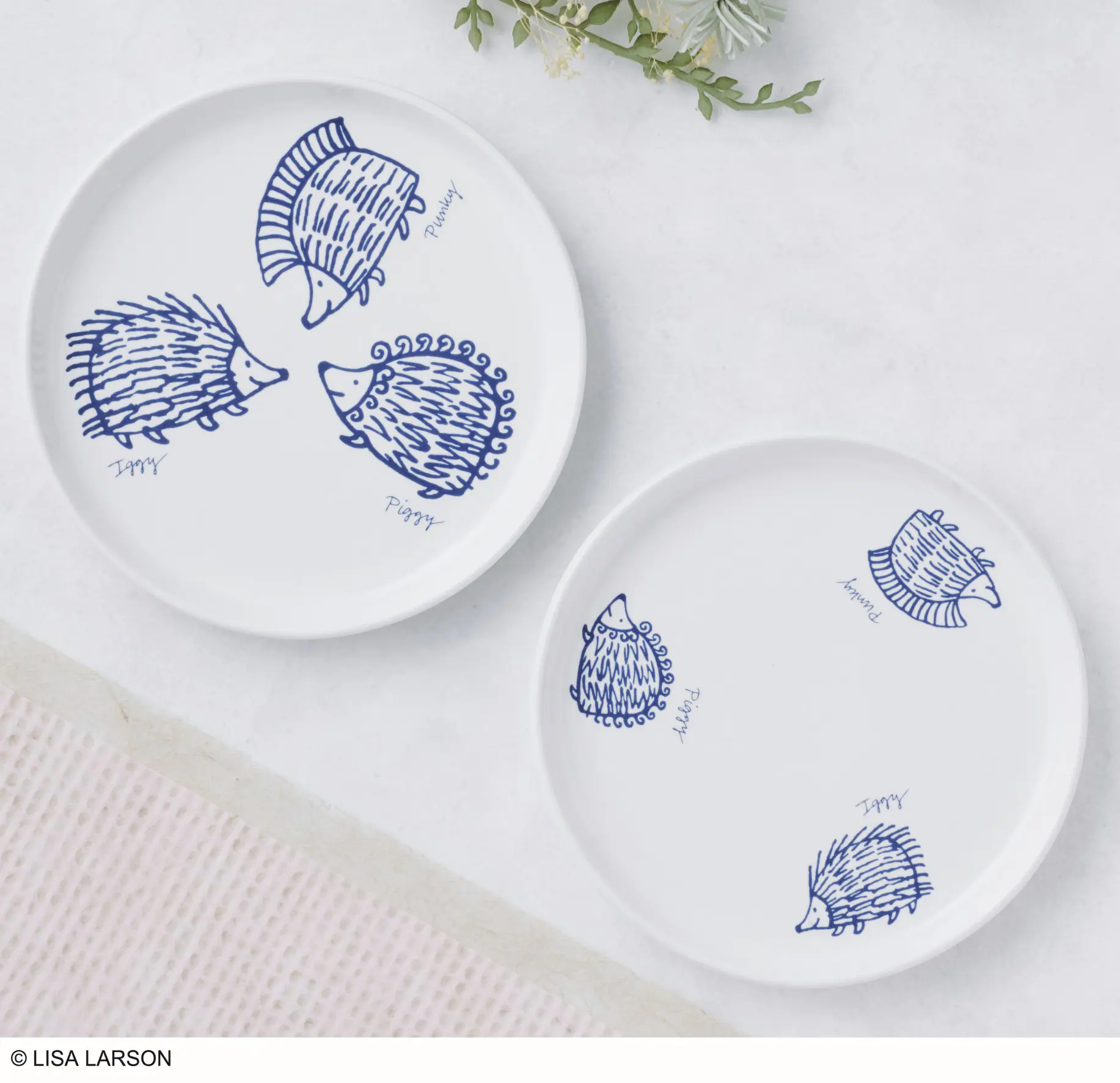 通常号には、スウェーデンの陶芸家リサ・ラーソンがデザインした磁器の丸皿2枚セットが付属。デザインは、はりねずみ3兄弟(イギー、ピギー、パンキー)が施されており、裏面にもイギーのデザインが描かれる。直径約13cmのため、取り皿としても使いやすく、電子レンジでの使用も可能。