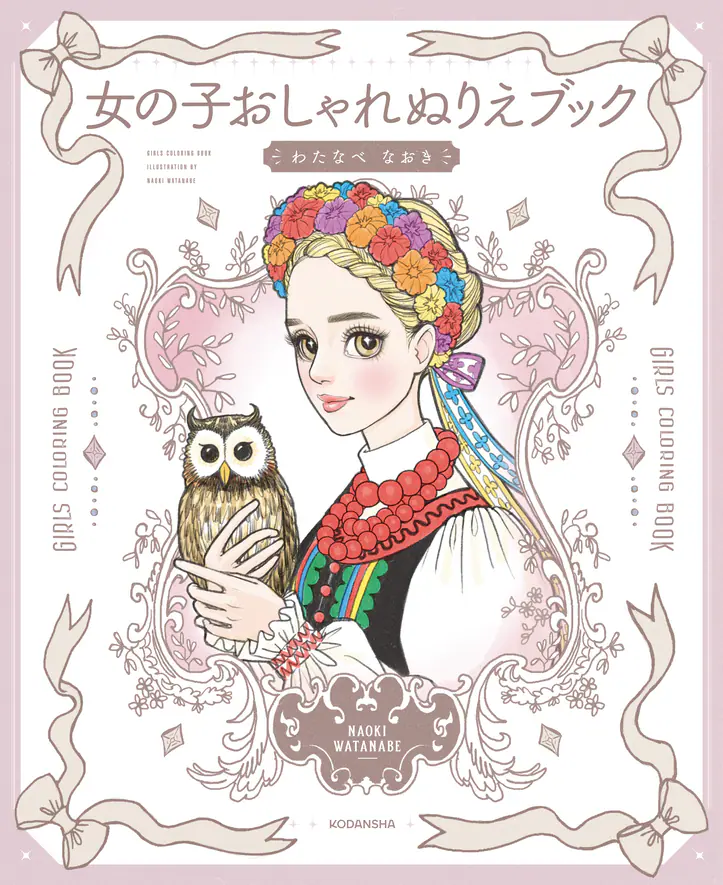 『女の子おしゃれぬりえブック』では、わたなべ氏の美しい世界観を、ぬりえをしながらじっくり味わうことができる。本書には、イラストぬりえが69点収録。「フォークロア」、「モダンガール」「オリエンタル」「レトロポップ」など、様々なスタイルを学びながら、ぬりえを楽しむことができる。
