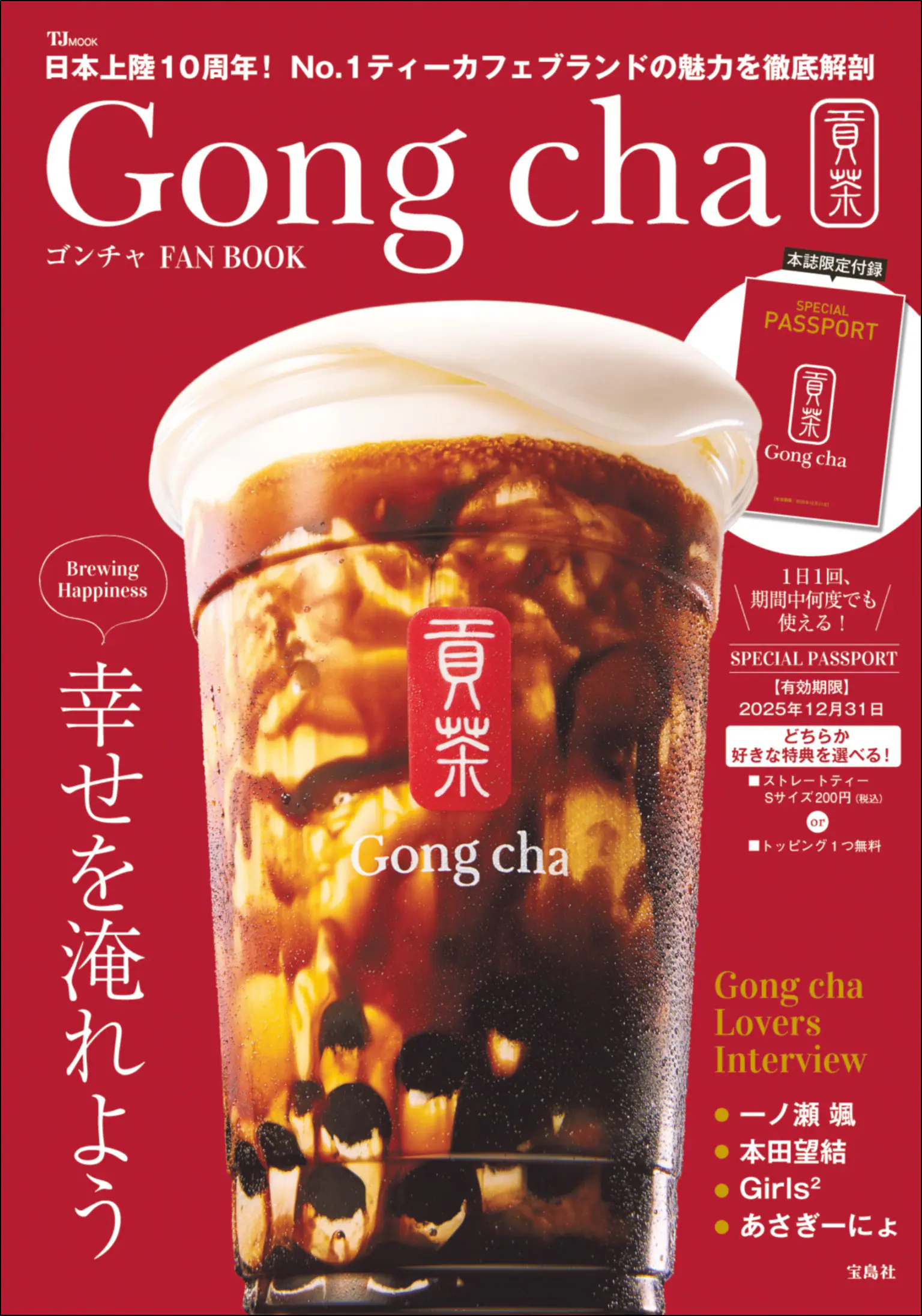 本誌は、今年日本上陸10周年を迎えた台湾発祥のグローバルティーカフェ「ゴンチャ」初の公式ファンブック。ゴンチャは、ウーロンティーやブラックティーをはじめとする上質なお茶はもちろん、パール(タピオカ)、アロエなどのトッピングや、甘さを選んで自分好みにカスタマイズできることも人気なティーカフェブランドだ。そんなゴンチャの魅力を、メニューやカスタマイズ紹介、社員インタビュー、ゴンチャが大好きという女優・本田望結の1日クルー体験などから掘り下げます。また、俳優の一ノ瀬颯やガールズ・パフォーマンスグループのGirls²、クリエイティブアーティスト・あさぎーにょといった各界のゴンチャ好きが魅力を語る内容となっている。