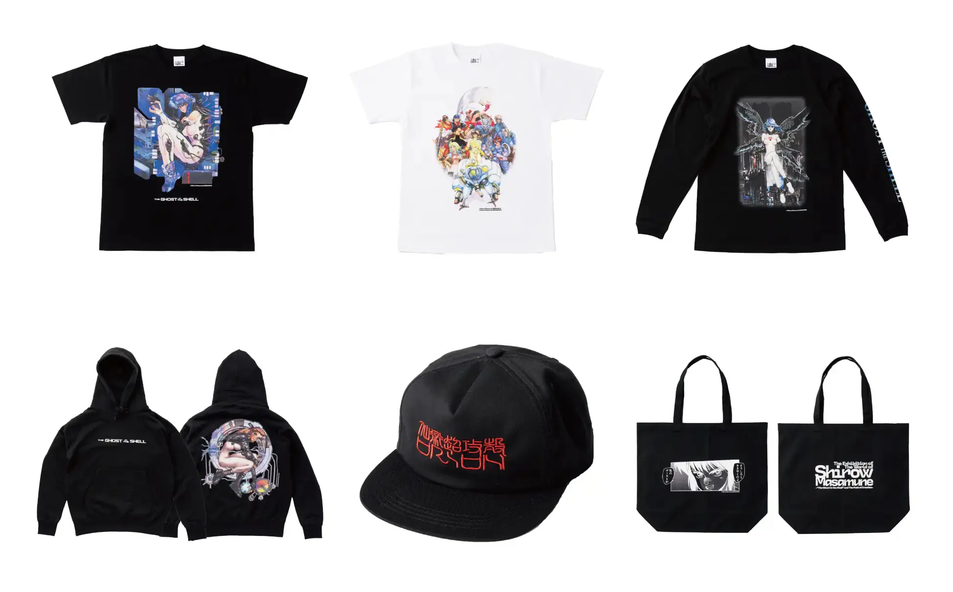 第一弾の発表では、Tシャツやパーカーなどのアパレルアイテムを中心に、合計50アイテムを公開。『攻殻機動隊』、『アップルシード』、『ドミニオン』、『仙術超攻殻オリオン』、『ブラックマジック』の5作品のビジュアルを用いた特別なデザインが特徴で、ファン必見の豪華ラインナップとなっている。
