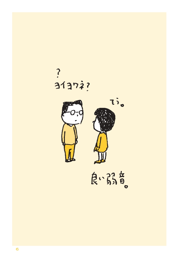 『ヨイヨワネ』は「良い弱音」のことで、ヨシタケ氏自身が日々あったこと、思ったことを弱音とともにスケッチしたもの。ヨシタケ氏は、不安を言語化し、客観視することーーつまり弱音をはいておくことは「本人の気持ちを健全な状態に保つために良いこと」だと捉えているという。実際に吐露される大小さまざまな弱音の数々は、可愛らしくもあり、何気ないようで切実なものでもあって、気を張って無理をしがちな人にも「たまには素直に弱音をはいてもいいじゃないか」と思わせてくれる。