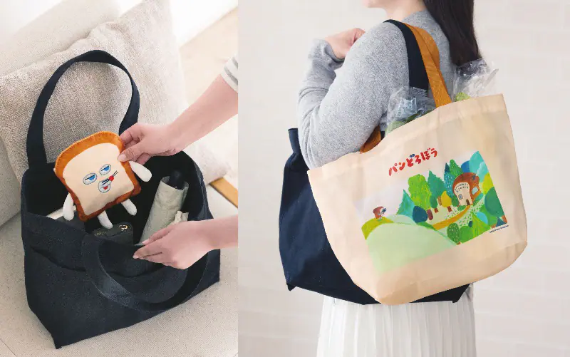 最大の特徴は、バッグを畳んで内ポケットに収納すると、まるでぬいぐるみのようなパンどろぼうの姿になること。バッグとして使わないときも、持ち運びが楽しくなるデザインだ。
