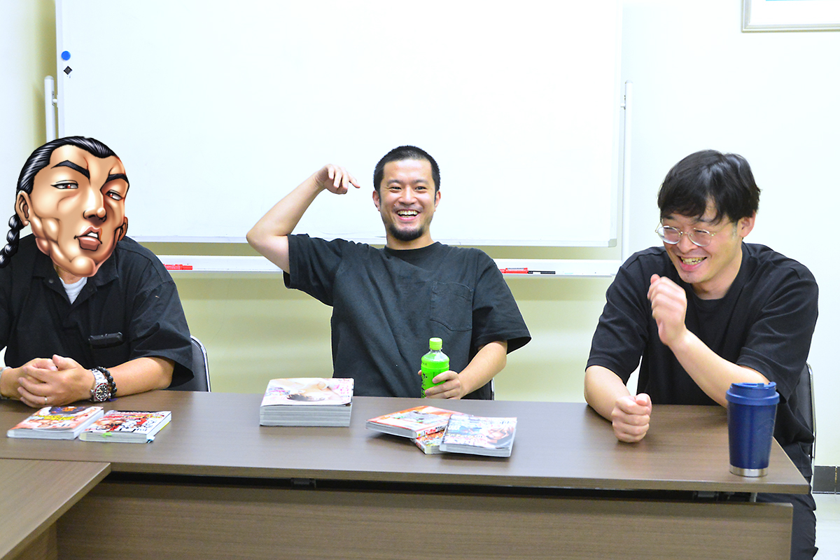 真島:板垣先生の作品を二人で研究しましたね。例えば「一コマで二人以上会話しない」など、板垣先生の漫画にはいろいろな特徴があるんです。当初は「これは板垣漫画になっていない!」と、毎回議論を重ねました(笑)。