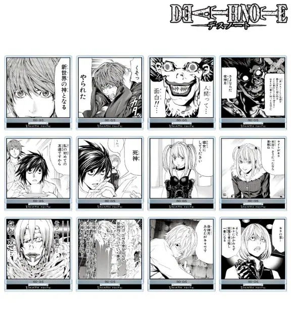 商品の1つが「トレーディングコマアクリルスタンド」。夜神月が「新世界の神となる」と話すシーンはじめ、リューク、L、弥 海砂、レム、ニア、メロの原作コマをアクリルスタンドに仕上げられている。