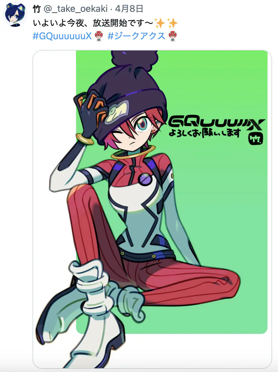 劇場先行版『機動戦士Gundam GQuuuuuuX -Beginning-』から大きな注目を集めている本作だが、アニメ1話放送直前にはキャラクターデザインを務めた竹がXにイラストを投稿し、5万以上のいいねを記録するなど話題を呼んでいる。