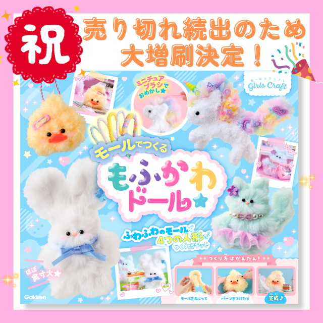 2024年12月5日にGakkenより発売された、ガールズクラフトシリーズ『モールでつくる もふかわドール』。本書が増刷されるなど話題を呼んでいる。