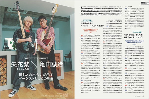 『ベース・マガジン2025年5月号』(リットーミュージック)が、2025年4月18日(金)に発売された。今号の特集テーマは“ベースの練習”。表紙には、ベーシスト/プロデューサーとして第一線を走り続ける亀田誠治と、7弦ベースを自在に操る矢花黎(B&ZAI)が登場し、表紙巻頭の奏法企画「練習しようぜ!」にて対談を行っている。
