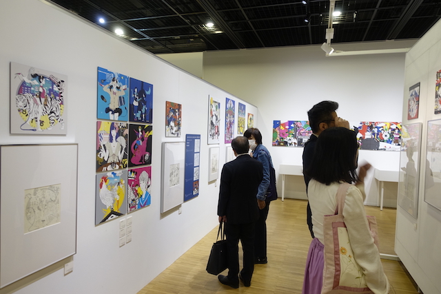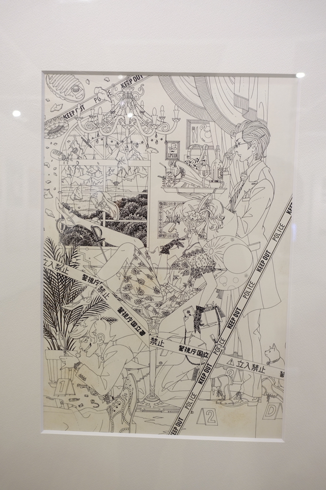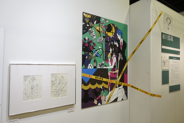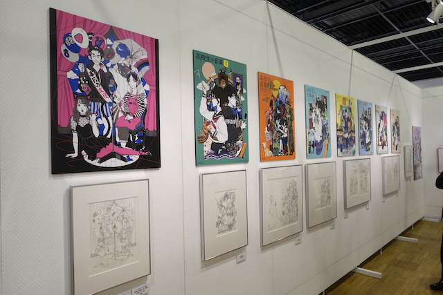 会場内に入って驚かされるのが、まずその物量。ASIAN KUNG-FU GENERATION関連作品や森見登美彦関連作品、東川篤哉関連作品などのセクションに区切って、原画と完成画が並べて展示されているのですが、どれだけ見ても見終わらないほどの作品数が展示されています。。特にASIAN KUNG-FU GENERATION関連のイラストは本当に数が多く、こんなに描いてたのか……と驚くこと必至。