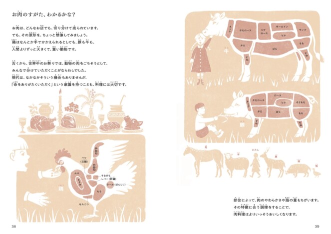 本書の魅力のひとつとして、食材の知識が深まるコラムも挙げたいです。いつも何気なく食べている卵や肉や魚がどこから来ているのかについて、わかりやすく解説しているのがいいですね。豚のバラ肉ってお腹なんだ!ロースは背中なんだ!って。