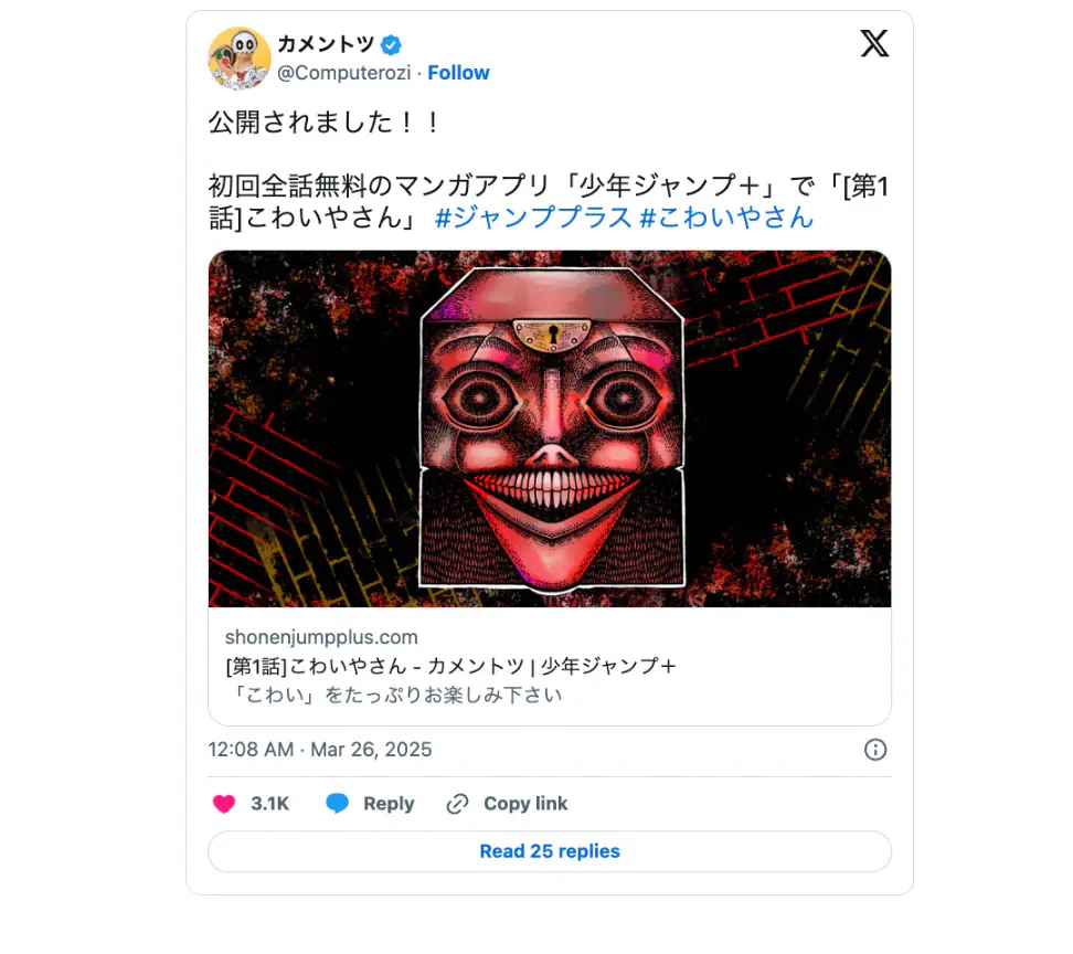 初回全話無料のマンガアプリ「少年ジャンプ+」で「[第1話]こわいやさん」 #ジャンププラス #こわいやさん https://t.co/1z26zGy3Wp