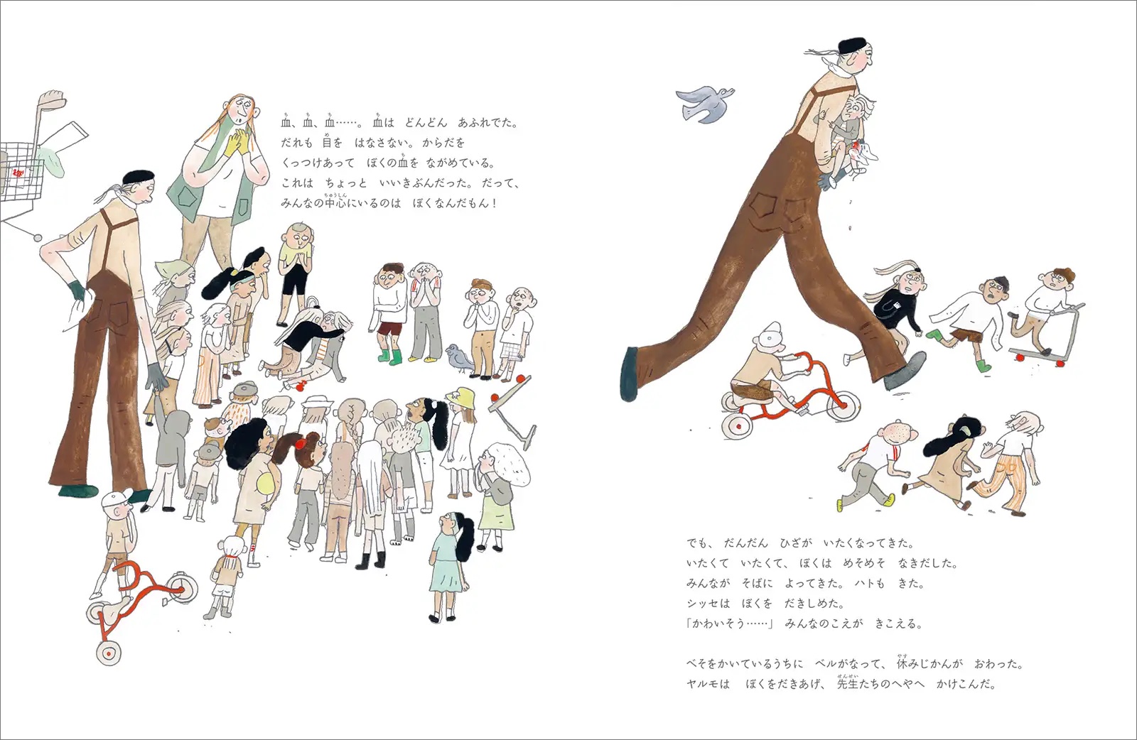 けがをした子どもが、あふれ出る血によって突如注目を集めて……世界10ヵ国で翻訳される絵本『けがをした日』