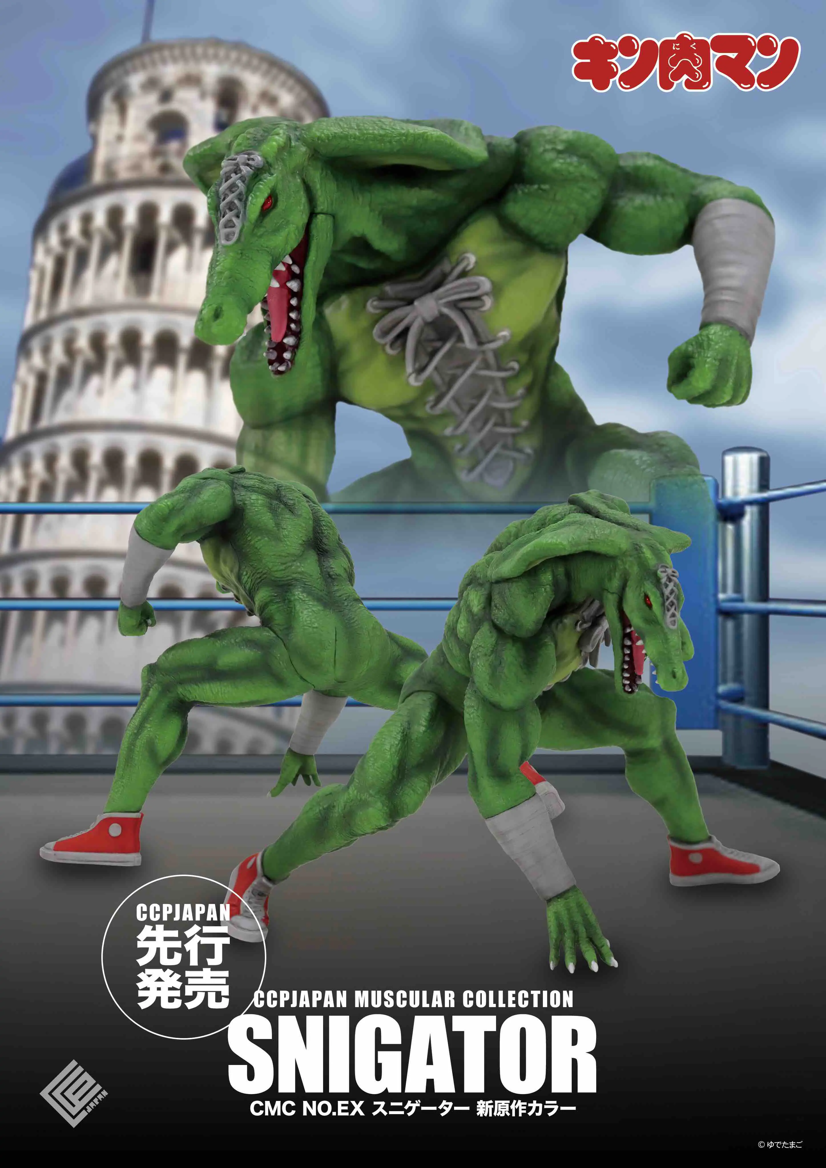 本商品は、「地獄めぐりNo.1 ワニ地獄」を司り、悪魔六騎士の中でも最初にキン肉マンと対峙したスニゲーターを、「無量大数軍編」以降の原作38巻以降の新章をイメージした新たなカラーリングで復刻したものである。