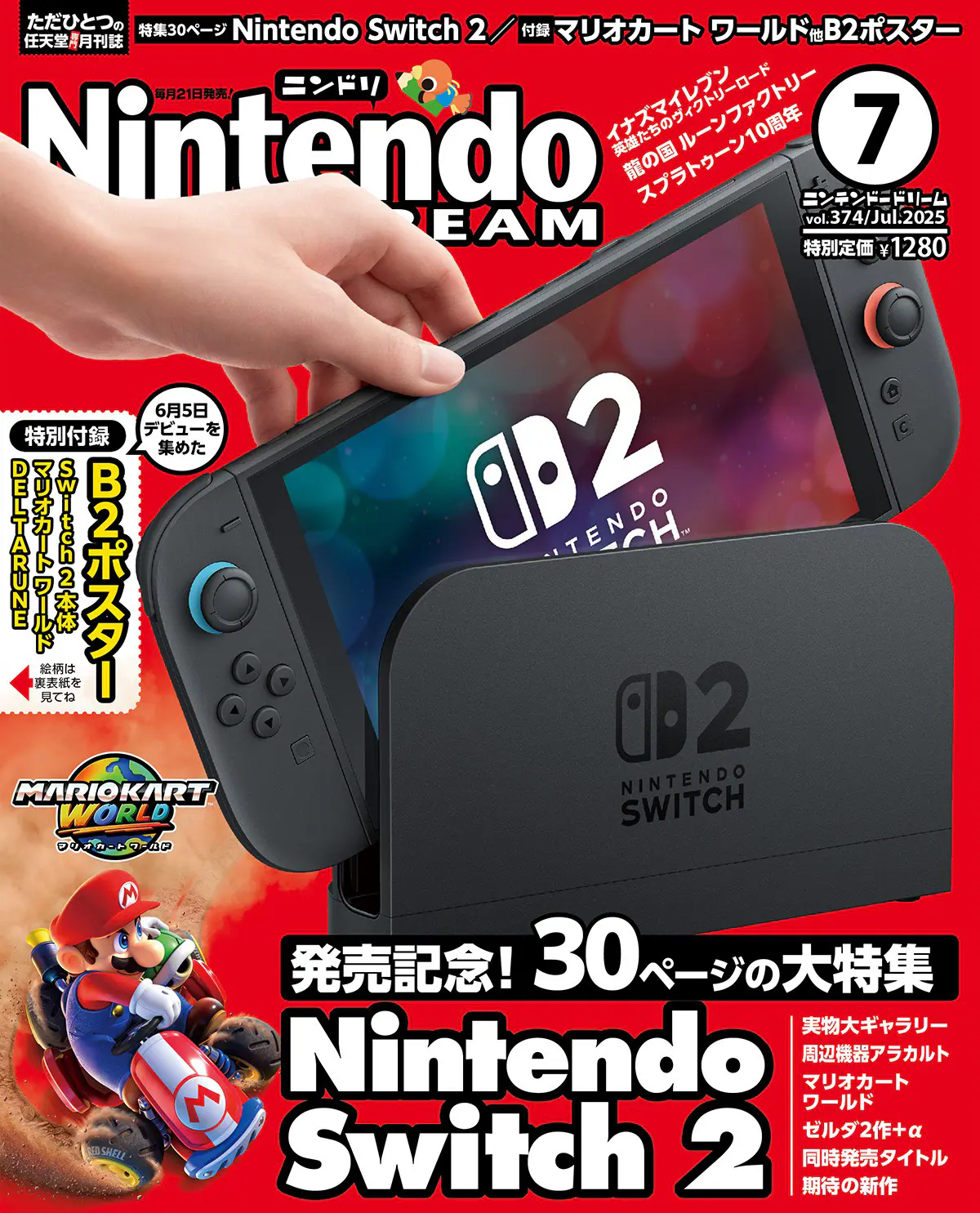 5月21日発売の任天堂専門ゲーム雑誌「ニンテンドードリーム」7月号は、発売が目前に迫った新ハード「Nintendo Switch 2」総力祭をお届け。特別付録は「Nintendo Switch 2」、『マリオカート ワールド』『DELTARUNE』のB2ポスター。 表紙いっぱいに広がるNintendo Switch 2 のビジュアルが目印だ。