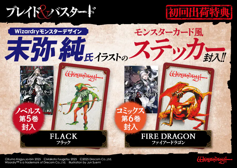 『ブレイド&バスタード』小説第5巻とコミックス第6巻には、初回出荷特典としてファミコン版「Wizardry」でモンスターデザインを手掛けた末弥純のイラストをあしらった「モンスターカード風ステッカー」を封入。