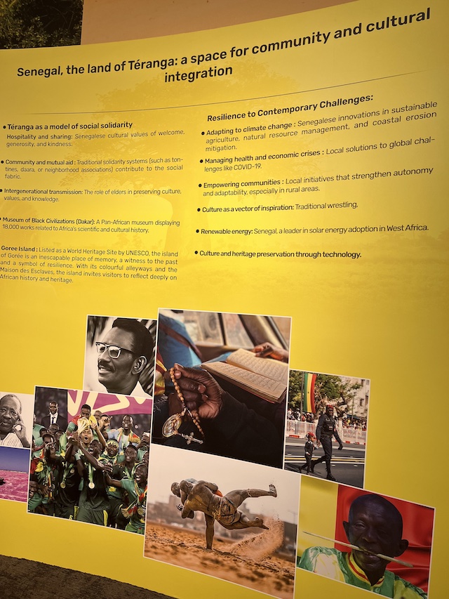 セネガルはアフリカの西海岸に位置する国で、フランス領時代の遺物やさまざまな自然公園があるという。入り口付近の映像では、日本風の衣装を着た男性が刀を振るいながら、これからのセネガルの発展を宣言している。ボードにはセネガルの歴史や未来のビジョンが写真と文章で説明されているのだが、これは日本語訳も欲しかったところだ。過去には奴隷貿易の拠点となったゴレ島の絵も飾られており、歴史を振り返る上でも貴重な展示となっているはず。来場者からも翻訳を希望する声があるそうなので、開催中に日本語訳が付くことを期待したい。