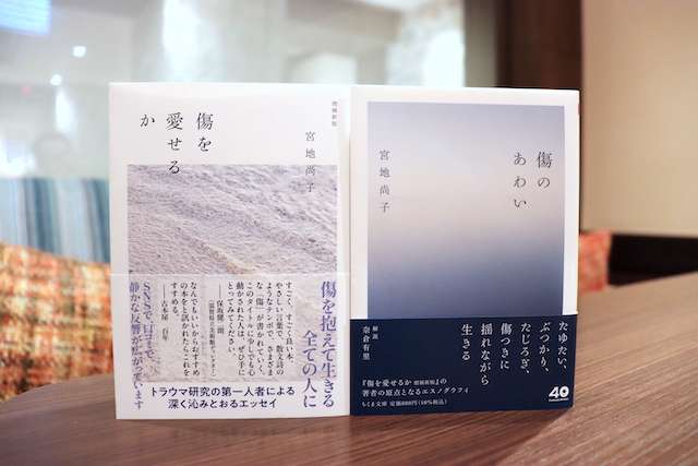 宮地:『傷のあわい』も『傷を愛せるか』も初版が刊行されたころはSNSもなかったし、社会のありようは全然違っていたと思うんですけど、先ほども言ったように、人が傷つくことの根っこはあまり、変わっていないと思います。みんな同じように戸惑ったり転んだりしながら、どうにか起き上がって、傷を抱えつつ生きている。その姿に触れて、なにか感じていただけるものがあれば嬉しいです。