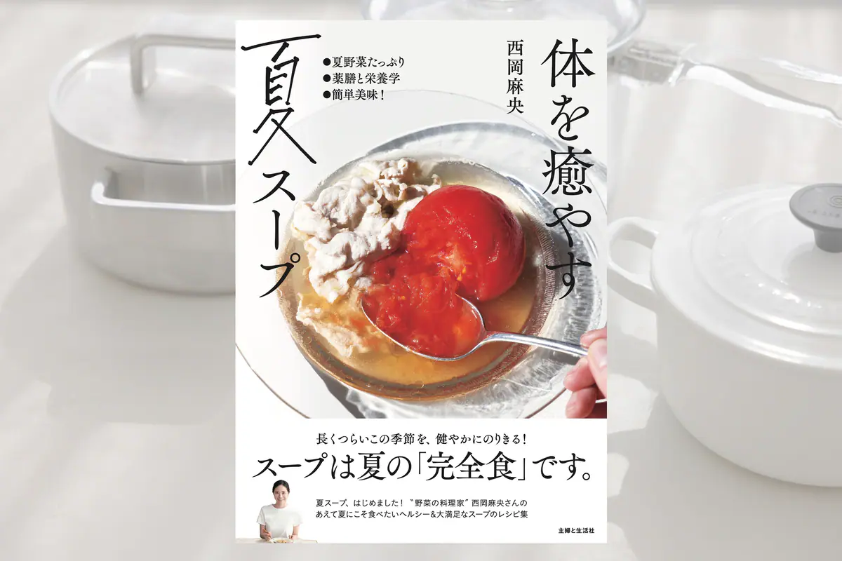 夏バテに効く豚肉のスープや夏の体を整えるねばねば食材のスープ、体の熱をとって潤す豆腐のスープなど、夏だからこそ食べたい「夏スープ」レシピが紹介されている。