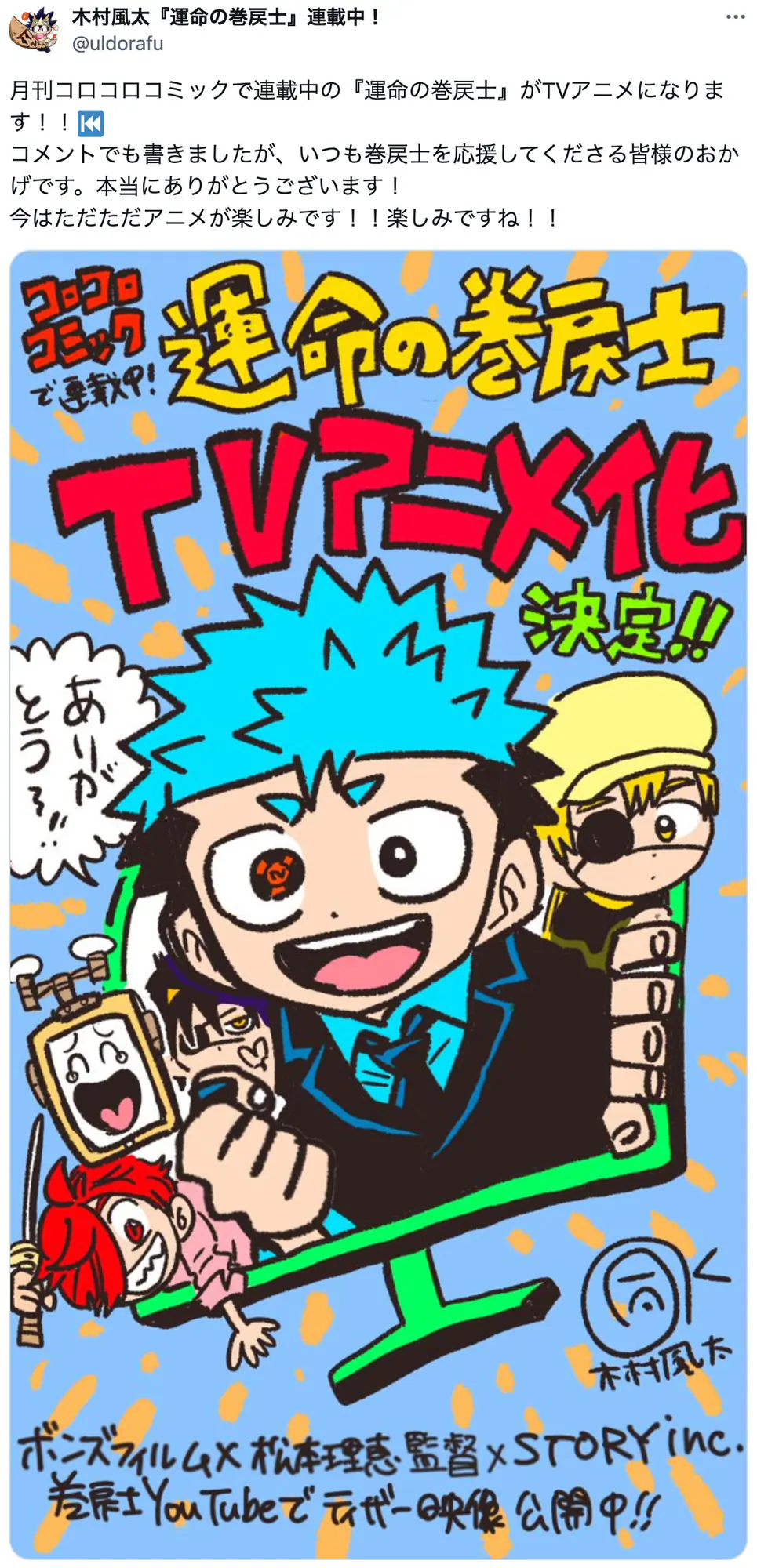 今はただただアニメが楽しみです!!楽しみですね!! pic.twitter.com/SbTvmWD0dl— 木村風太『運命の巻戻士』連載中! (@uldorafu) July 10, 2025