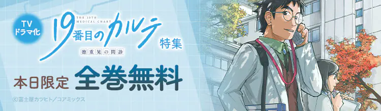 LINEヤフー株式会社と協力して運営する電子書籍販売サービ「ebookjapan」https://ebookjapan.yahoo.co.jp/と、当社が運営する電子コミックサービス「LINEマンガ」https://manga.line.me/ において、本日7月13日(日)限定で、『19番目のカルテ 徳重晃の問診』(コアミックス)の全巻無料キャンペーンを開催中だ。