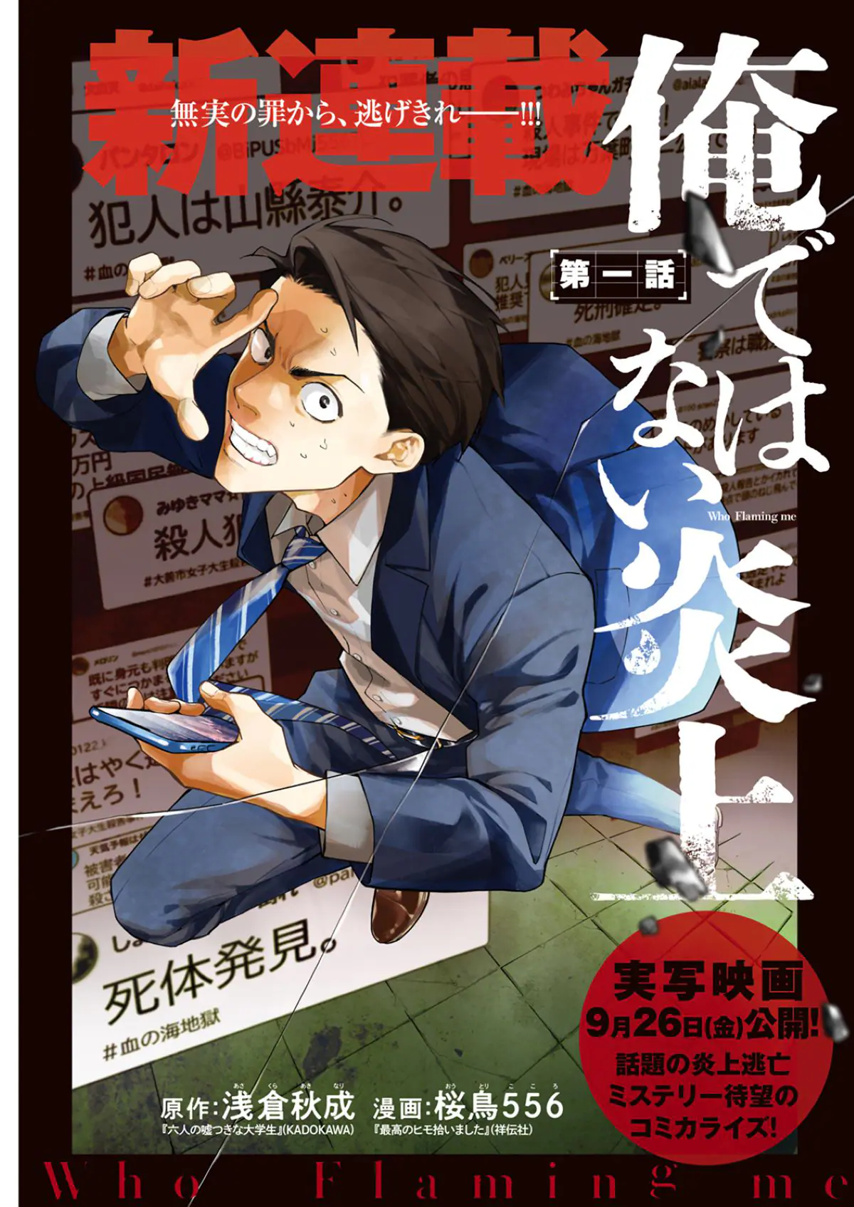 巻頭カラーには『俺ではない炎上』(原作・浅倉秋成/漫画・桜鳥556)が掲載。炎上逃亡ミステリーとして話題の文芸作品のコミカライズ版であり、9月26日は同タイトルの劇場版も公開される。