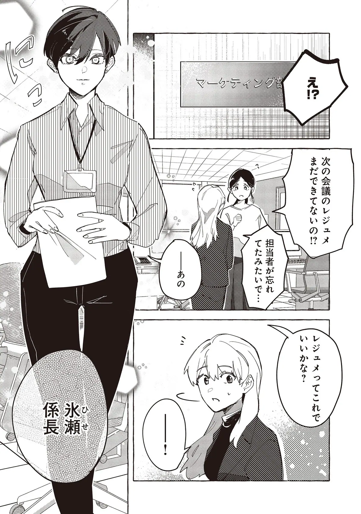 「男女性」とは異なる「Dom(支配する者)」と「Sub(支配される者)」という「第二性」が存在する世界。氷瀬清理は、大手広告代理店の頼れる係長。上司や部下からの信頼も厚い彼女には、ある秘密があった。それは、自身が「Dom」という第二性を持っていること。学生時代の苦い経験から、その事実を隠して生きてきた清理は、責任感が強すぎるがゆえに前職場で精神的パニックを起こし、今も精神安定剤に頼る日々を送っていた。