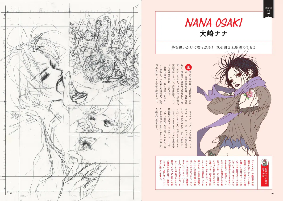 矢沢あいと『NANA』を刊行する出版社、集英社の全面協力のもと、未公開の下絵や作画資料が掲載される。