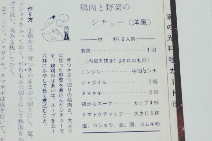 結城:食生活の変化は、1963年から続く長期連載となっている「家の光料理カード」を見ればわかります。1960年代当時のレシピを見ると、大家族を意識して6人分になっているのです。また、シチューに若鶏1羽を使うなど、明らかに量が多いですし、かつては自宅で飼育している鶏を料理に使うという発想もあったのかもしれません。
