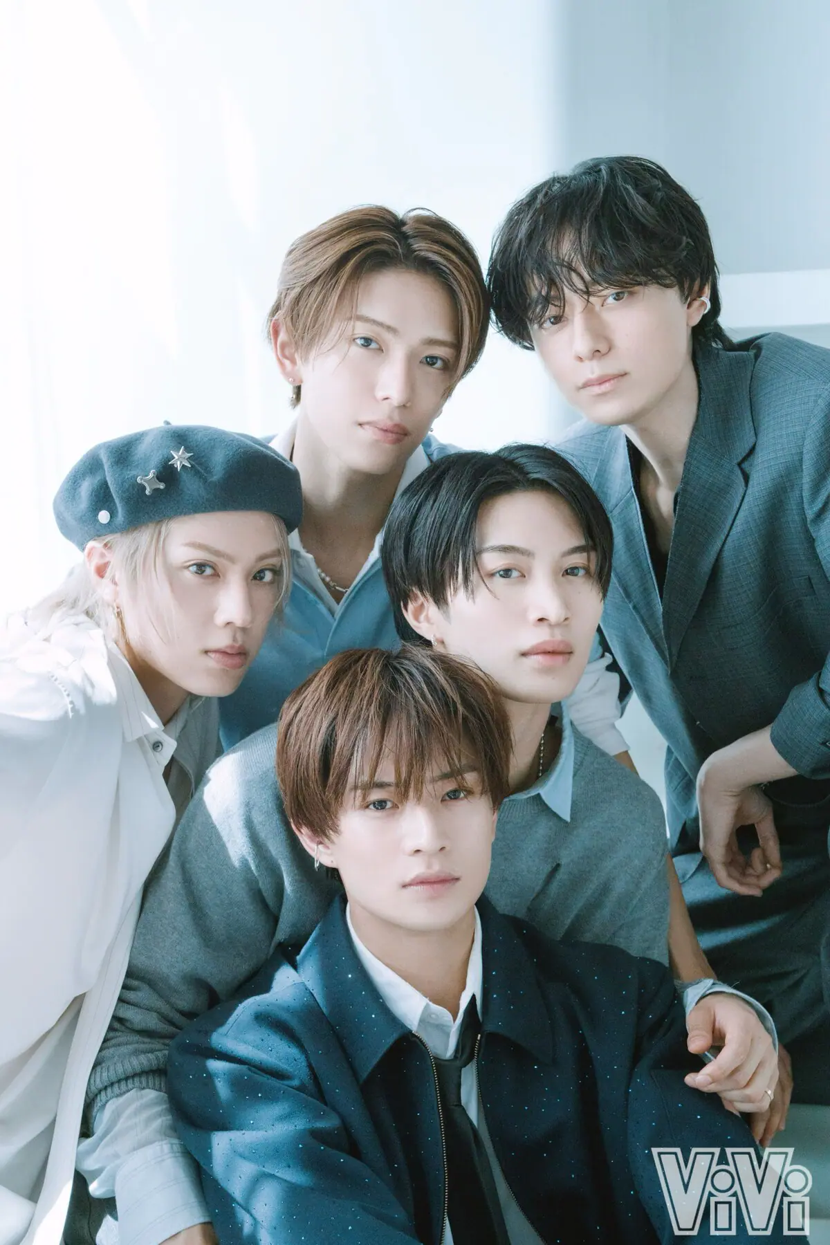 取材はアリーナツアー真っ只中に実施。ツアーやメンバーだけのプライベート北海道旅行を経て、さらに絆が深まった5人。ViViの撮影の待機中も常に一緒で、お互いツッコみ合いながら、イジり合いながら、時に愛でながら雑談したり、一緒に動画を見たり、手元の紙に落書きしていたり……。まるで学校の休み時間のような和やかな空気が流れていたという。
