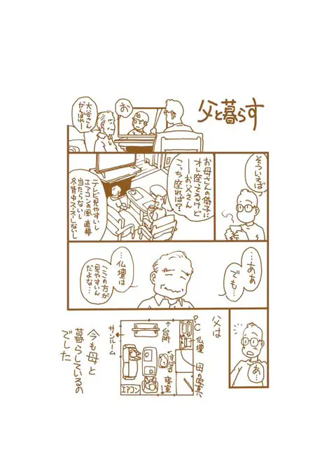 【漫画】90歳の父、食卓で不便な席に座るのはなぜ? 家族愛を描く漫画『父と暮らす』が泣ける