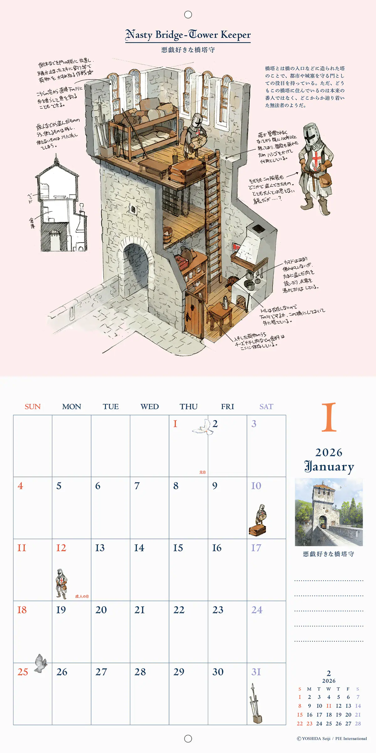 吉田誠治の画集『ものがたりの家』 2026年版壁掛けカレンダー登場