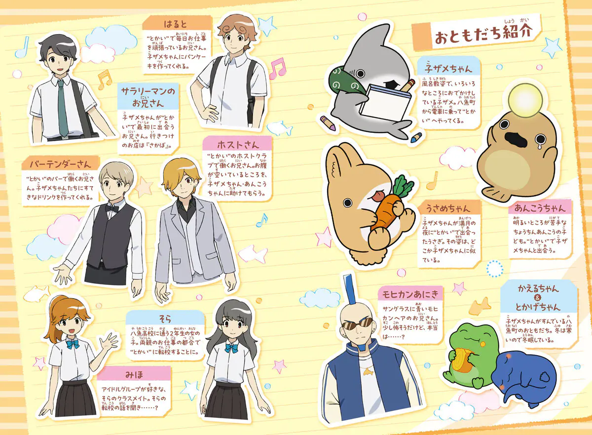 いつもくらしている八魚町を飛び出して「とかい」にやってきた子ザメちゃん!