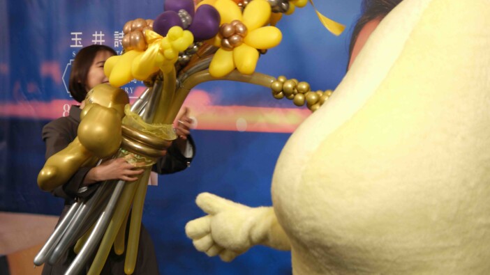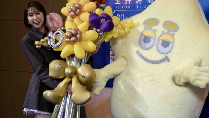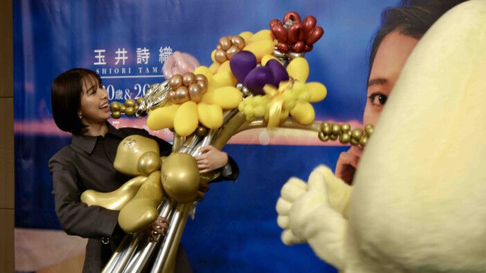また、写真集の発売を記念して、SDP公式キャラクター「すたぴぃ」から花束が贈られる場面もあった。玉井のメンバーカラーである黄色の花束を受け取ると、思わぬサプライズに笑顔を見せた。